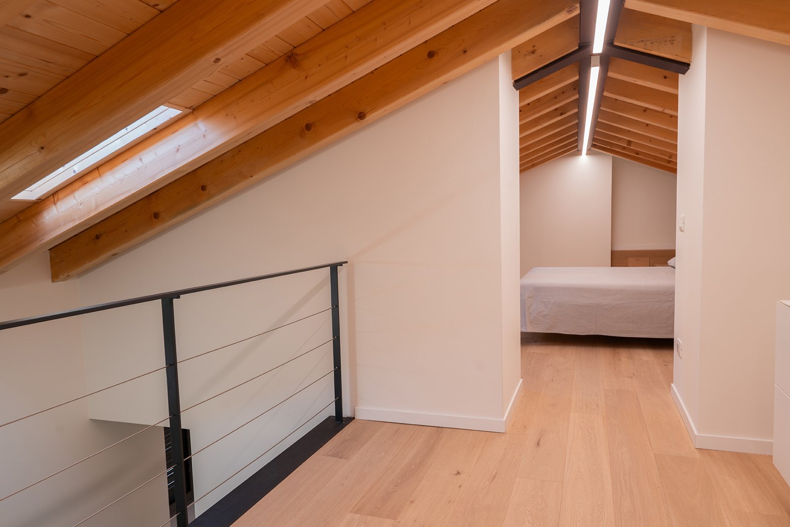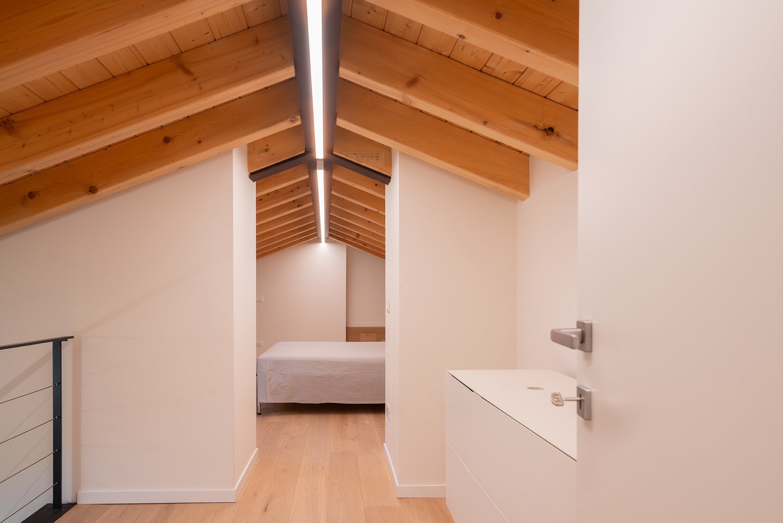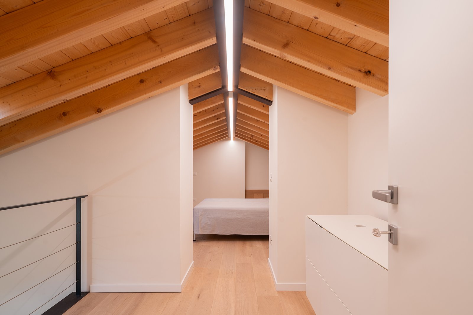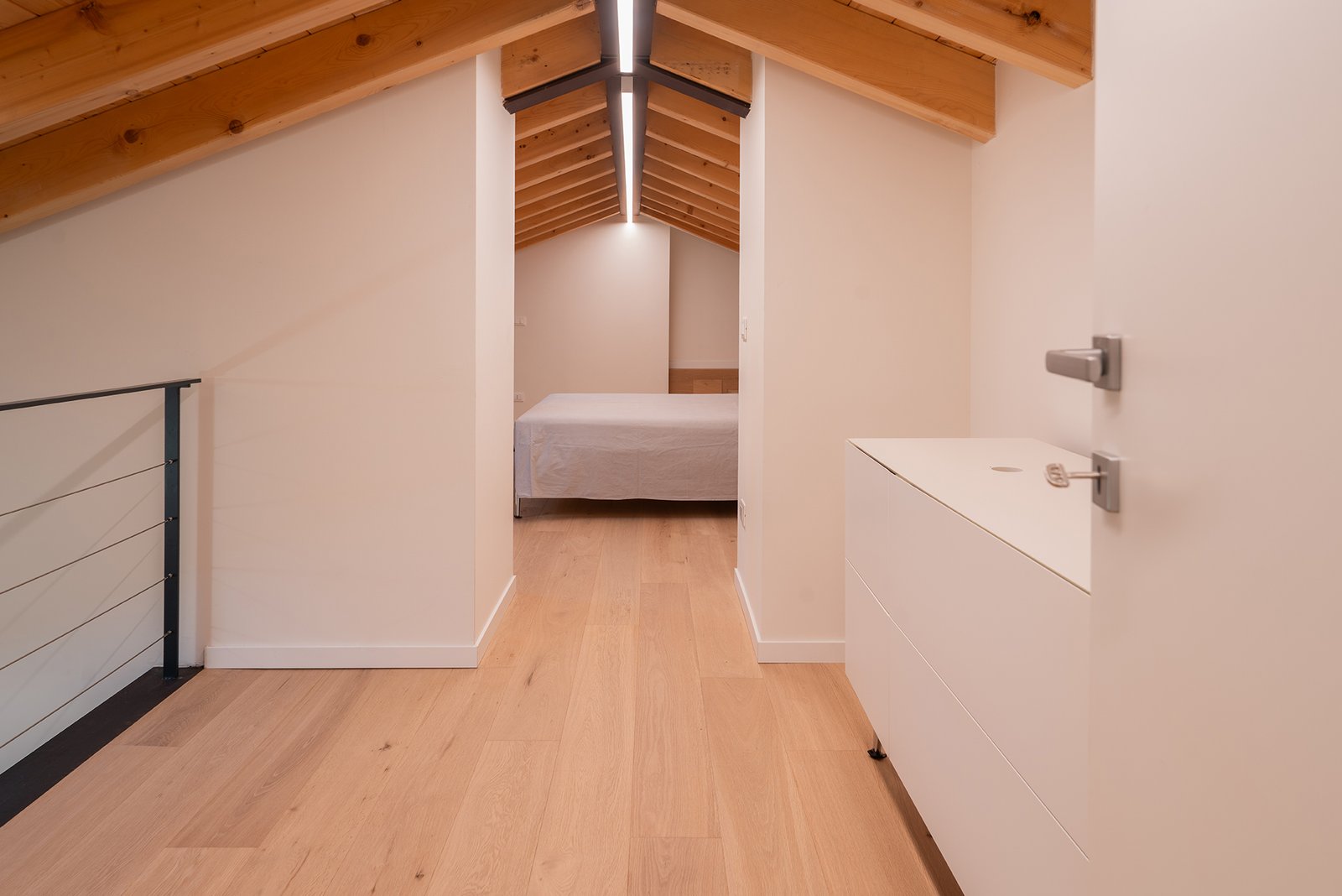 Un corridoio lungo e luminoso conduce alla zona notte del piano inferiore, composta da: