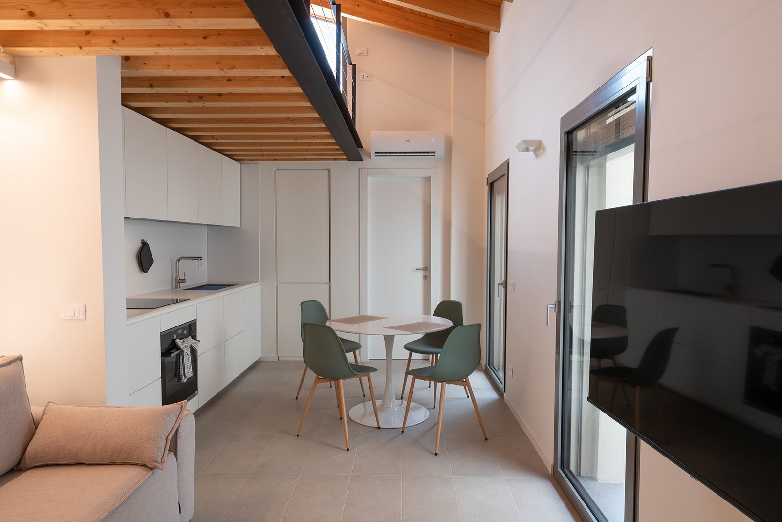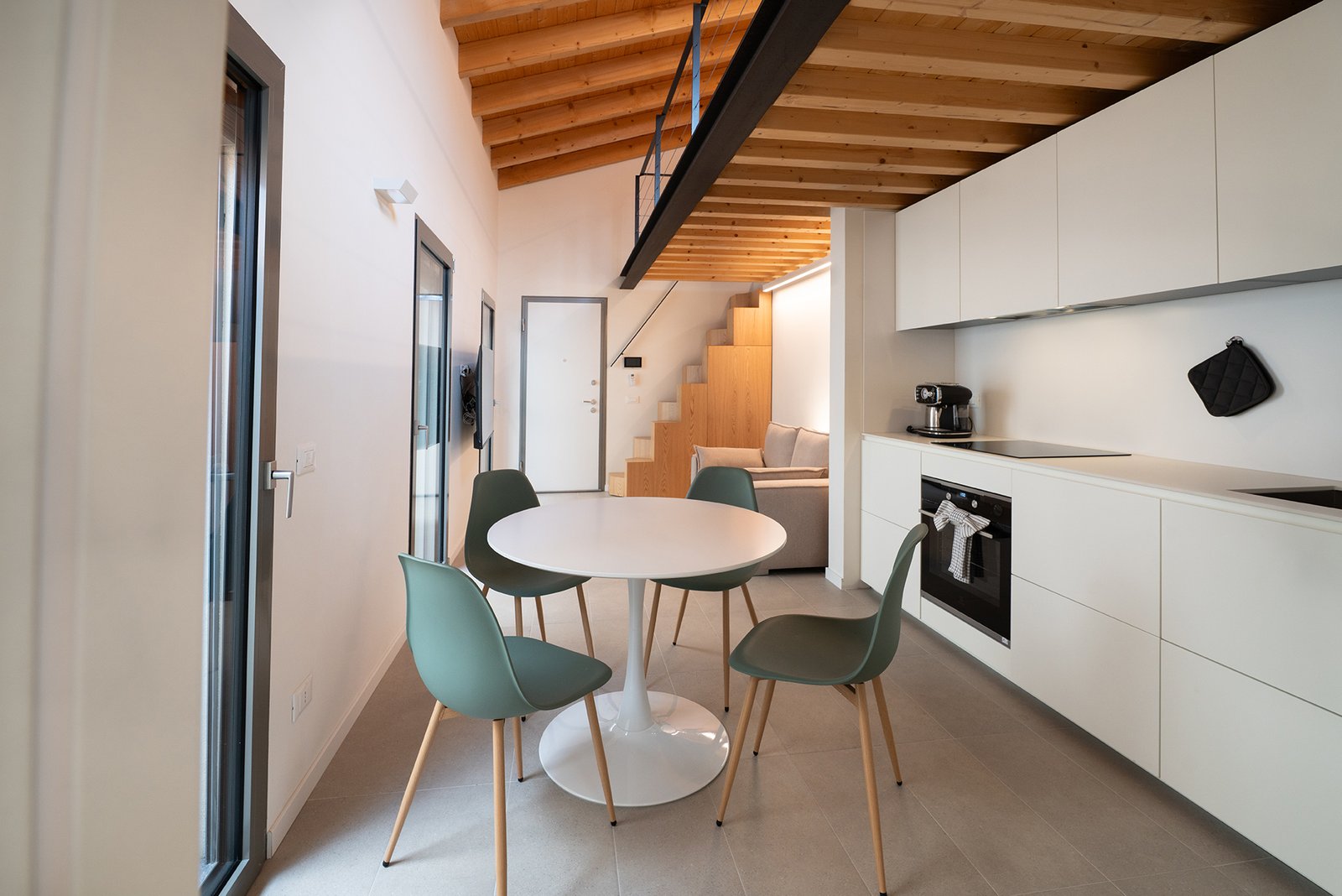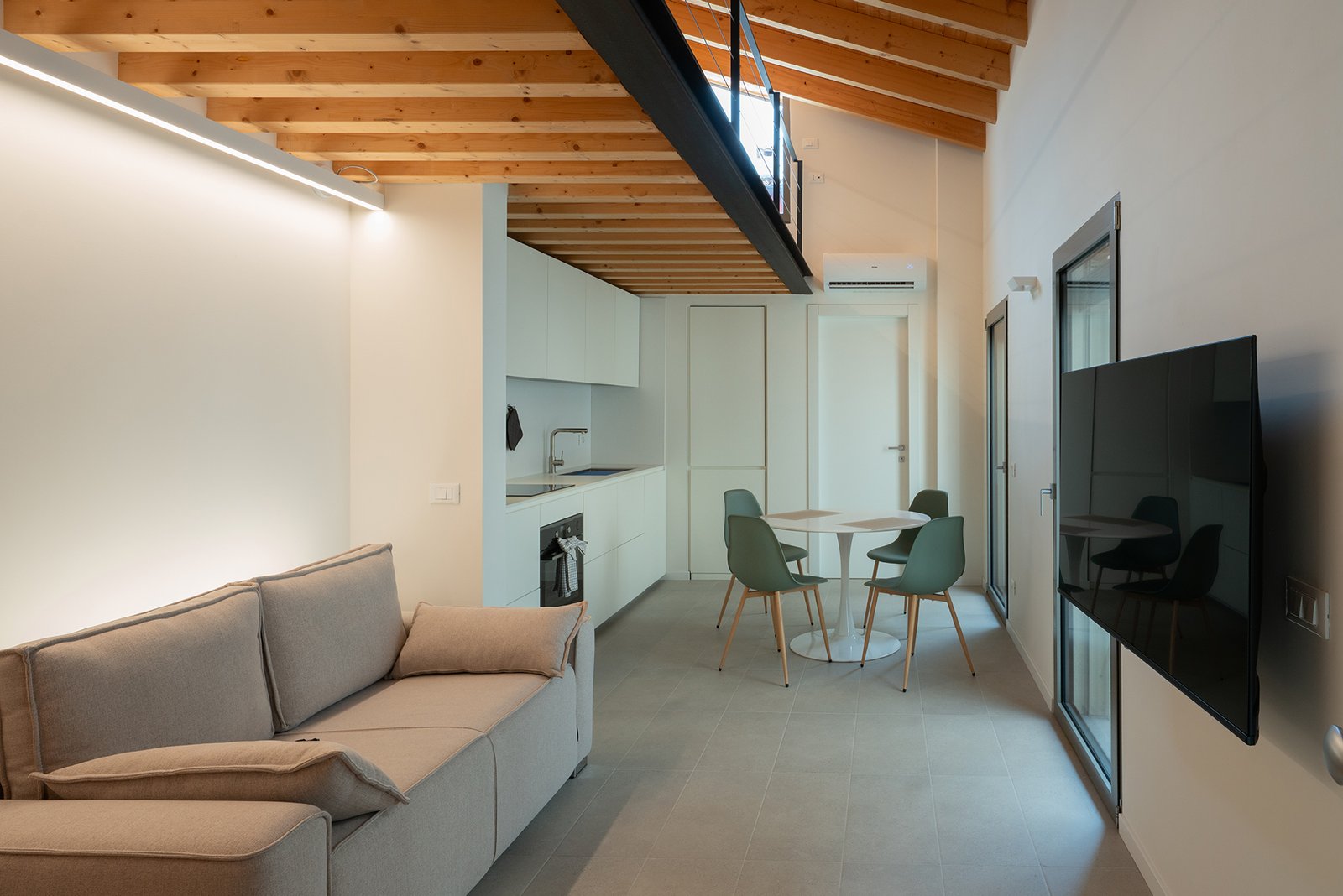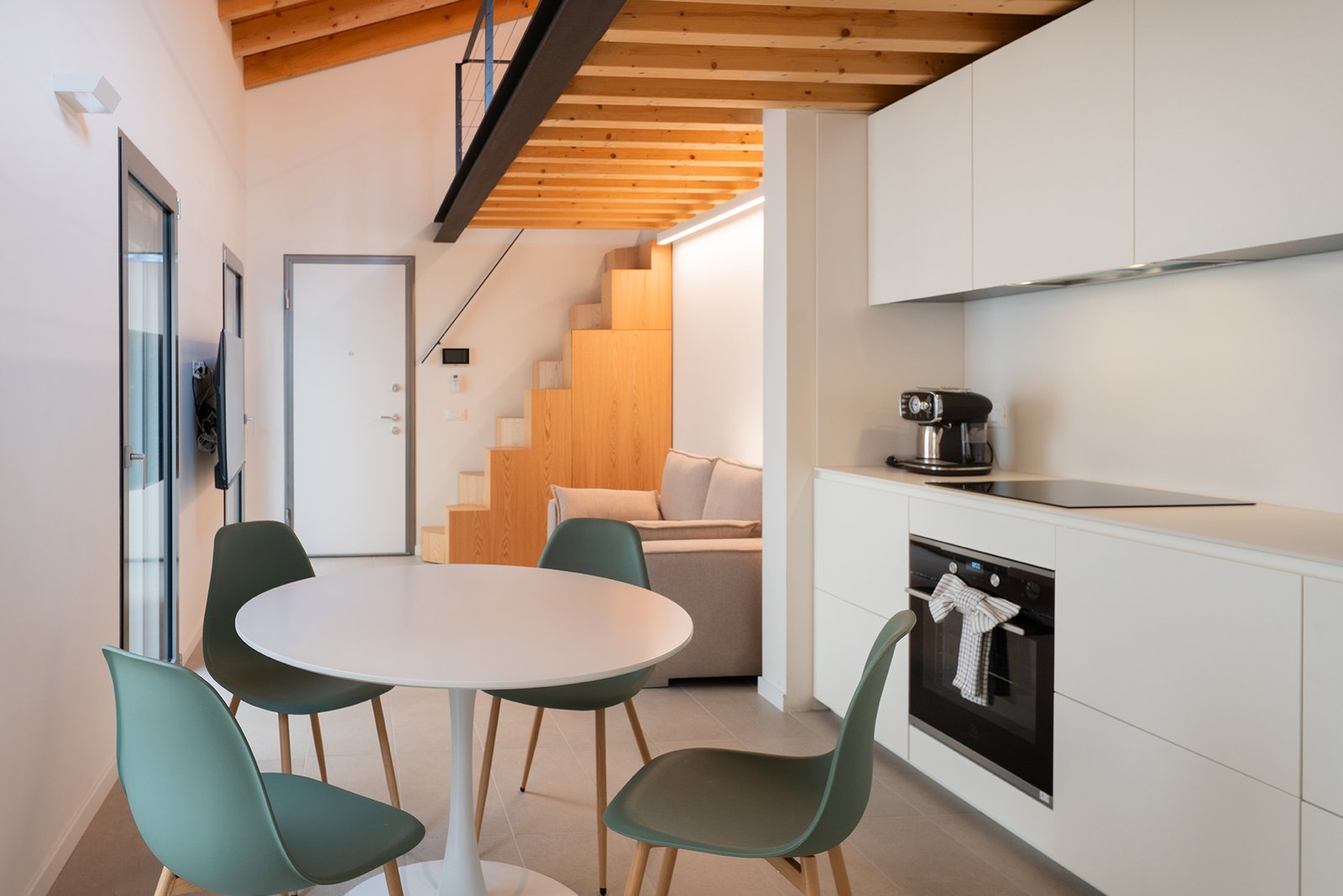 VESTA è un bilocale unico nel suo genere, distribuito su due livelli e caratterizzato da un’atmosfera calda e accogliente, grazie anche alle travi a vista e alla luminosità che lo attraversa. All’ingresso si accede direttamente al soggiorno con cucina a vista, un ambiente ampio e confortevole. La cucina è completamente accessoriata, con lavastoviglie, lavatrice, macchina da caffè, frigorifero e tutto […]